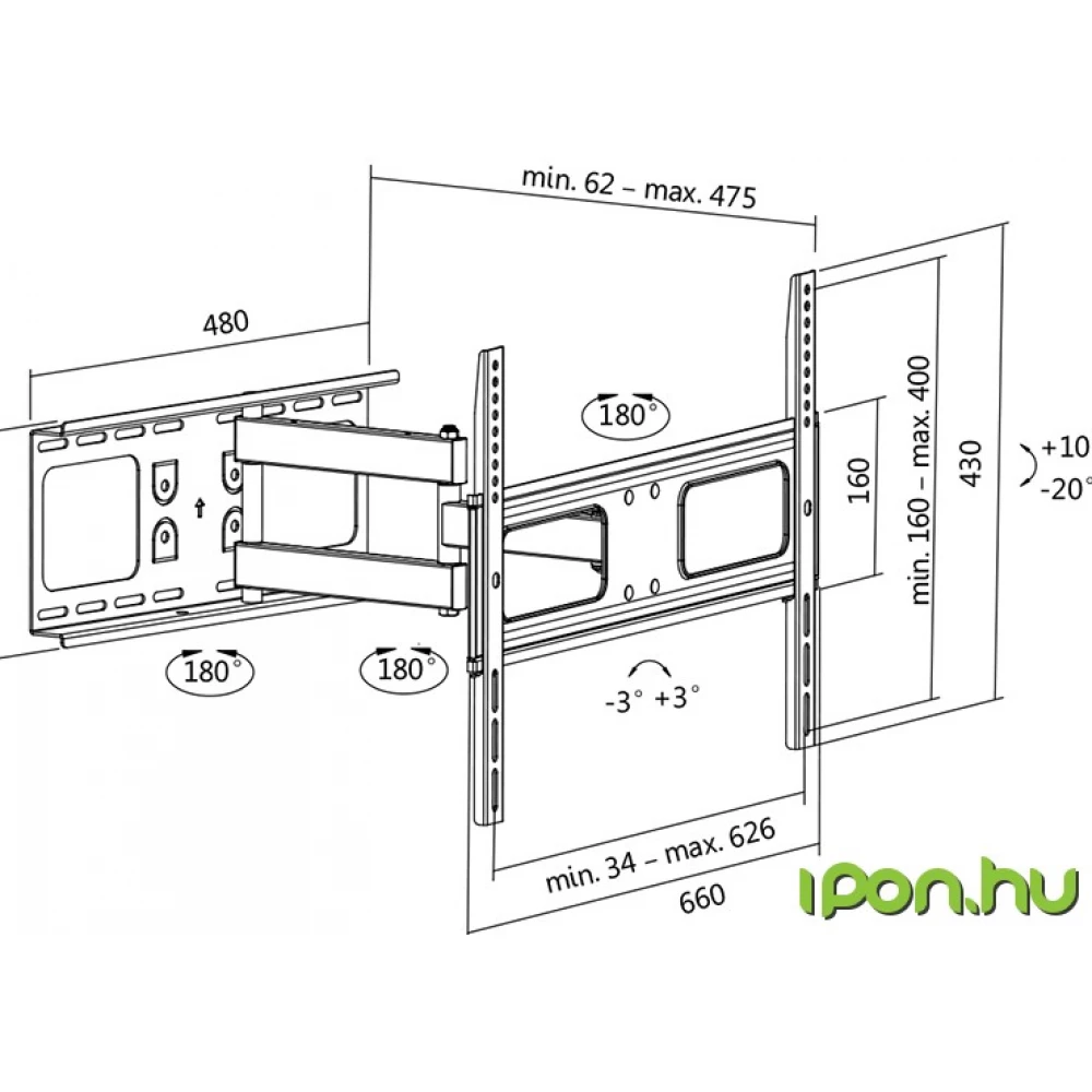 - Szabvány: VESA 200x200, 400x200, 300x300, 400x400, 600x400 mm