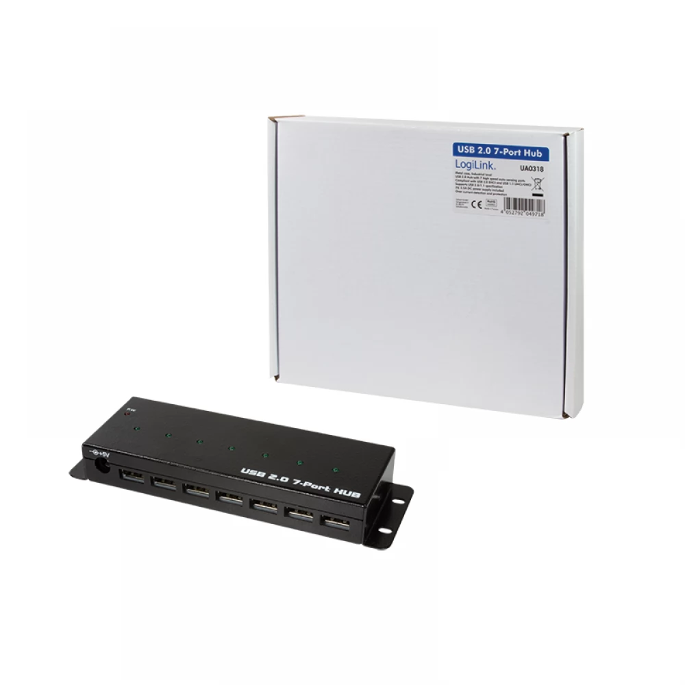 LOGILINK USB 2.0 7-port industrial level metal case fekete