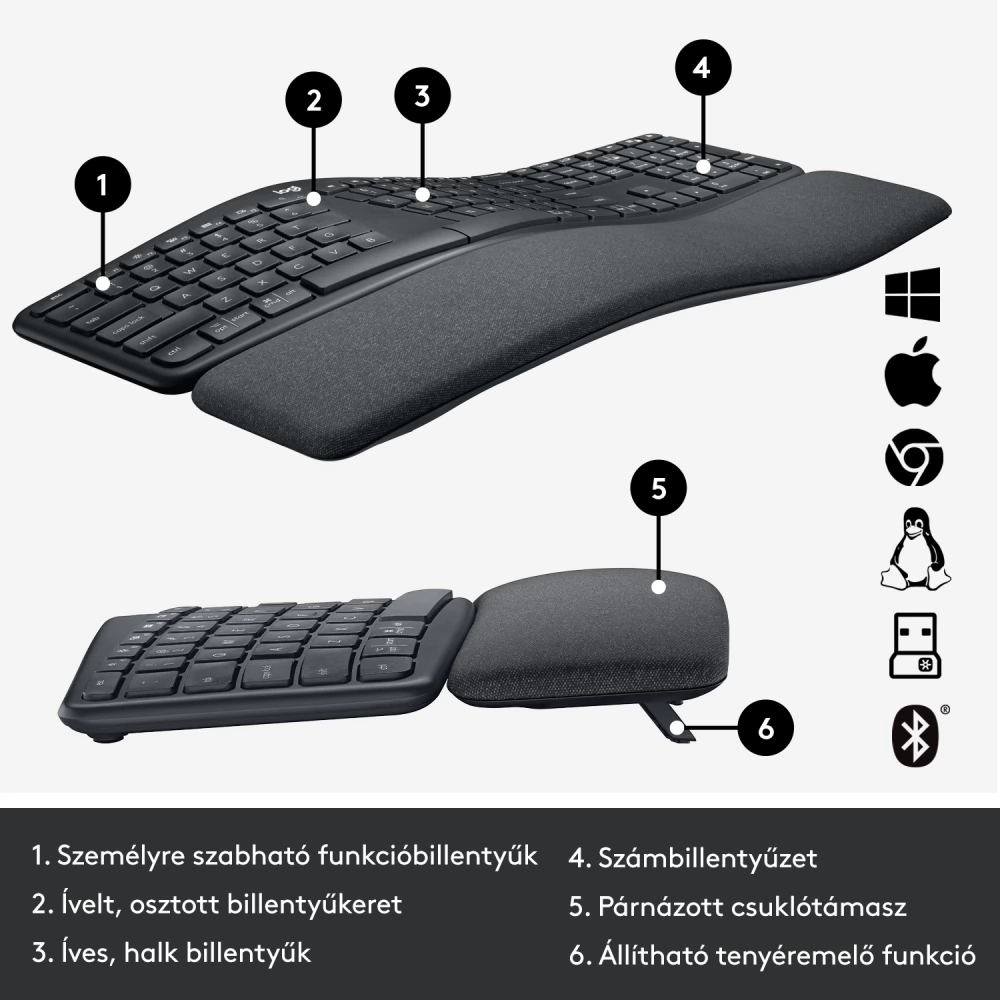 LOGITECH Ergo K860 vezeték nélküli ergonómikus billentyűzet üzleti használatra Francia Fekete