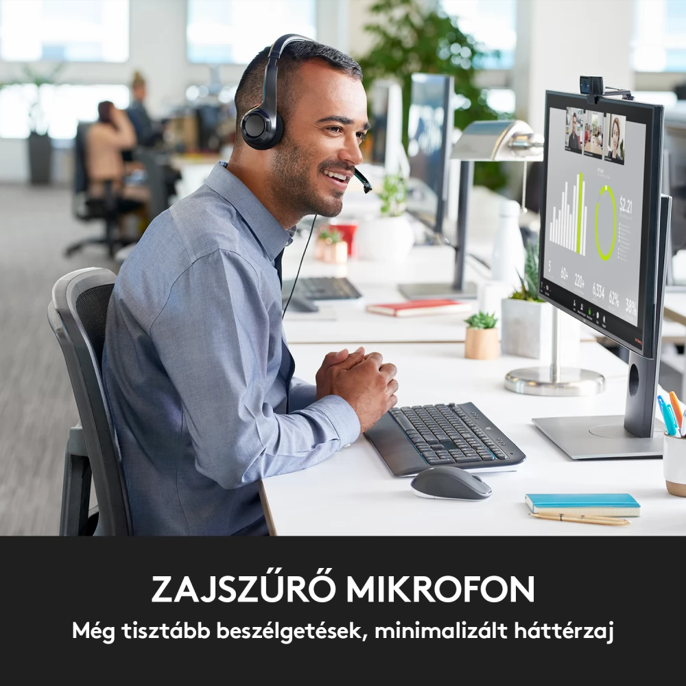 Az egyszerű Plug and Play USB-kapcsolattal és a mikrofonos fejhallgató zajszűrő mikrofonjával tisztán hallható lesz a videós megbeszélés vagy a zene. A finomhangolással beállított 30 mm-es hangsugárzók továbbfejlesztett digitális hangzást biztosítanak az értekezletekhez, a zenéhez és egyebekhez.