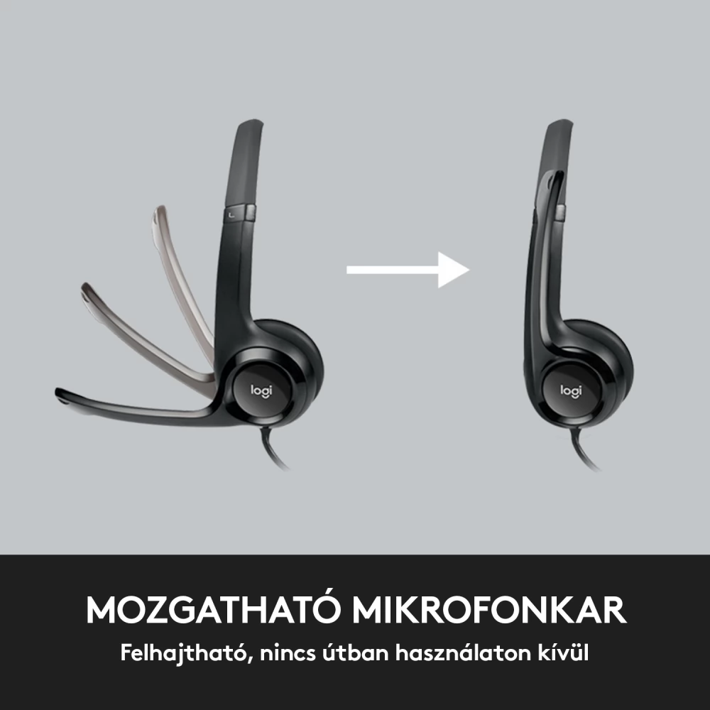 A tisztán hallható beszélgetések érdekében a H390 minimálisra csökkenti a nem kívánt háttérzajt. A merev, bal oldali mikrofon elhelyezhető a jobb hangfelvételhez. A forgatható mikrofonkart behajthatja, hogy használaton kívül ne legyen útban.