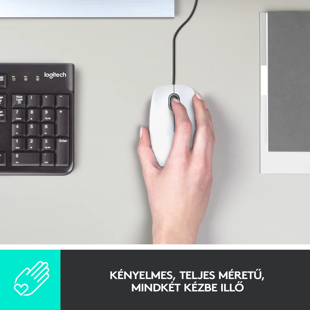 Legyen jobb- vagy balkezes, többórás használat után is kényelmesnek fogja találni a teljes méretű, mindkét kézbe illő egeret.
