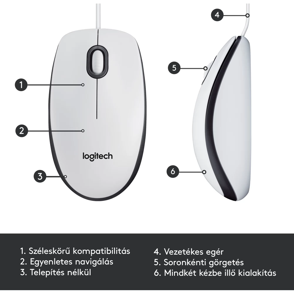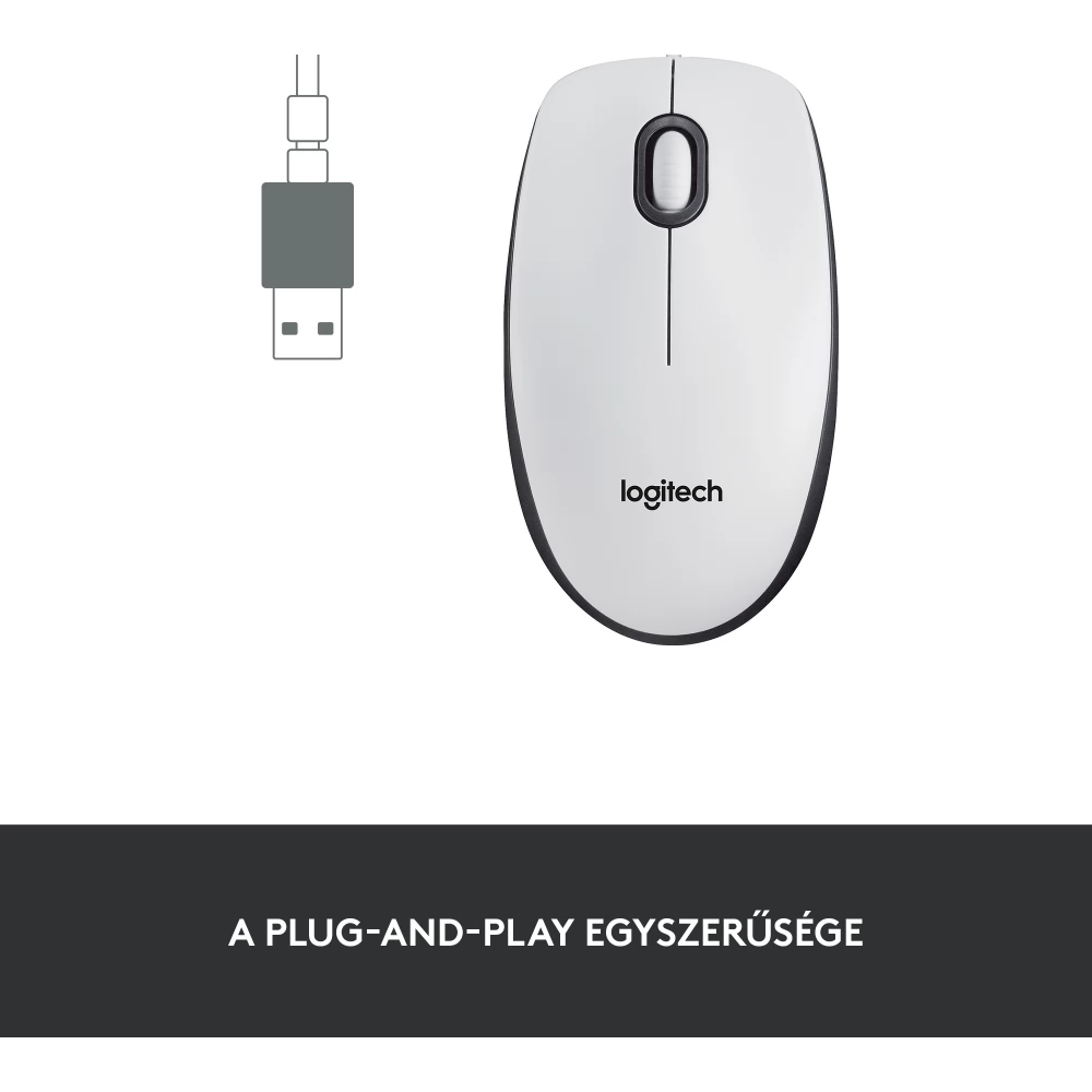 LOGITECH M100 Optikai vezetékes egér USB - fehér