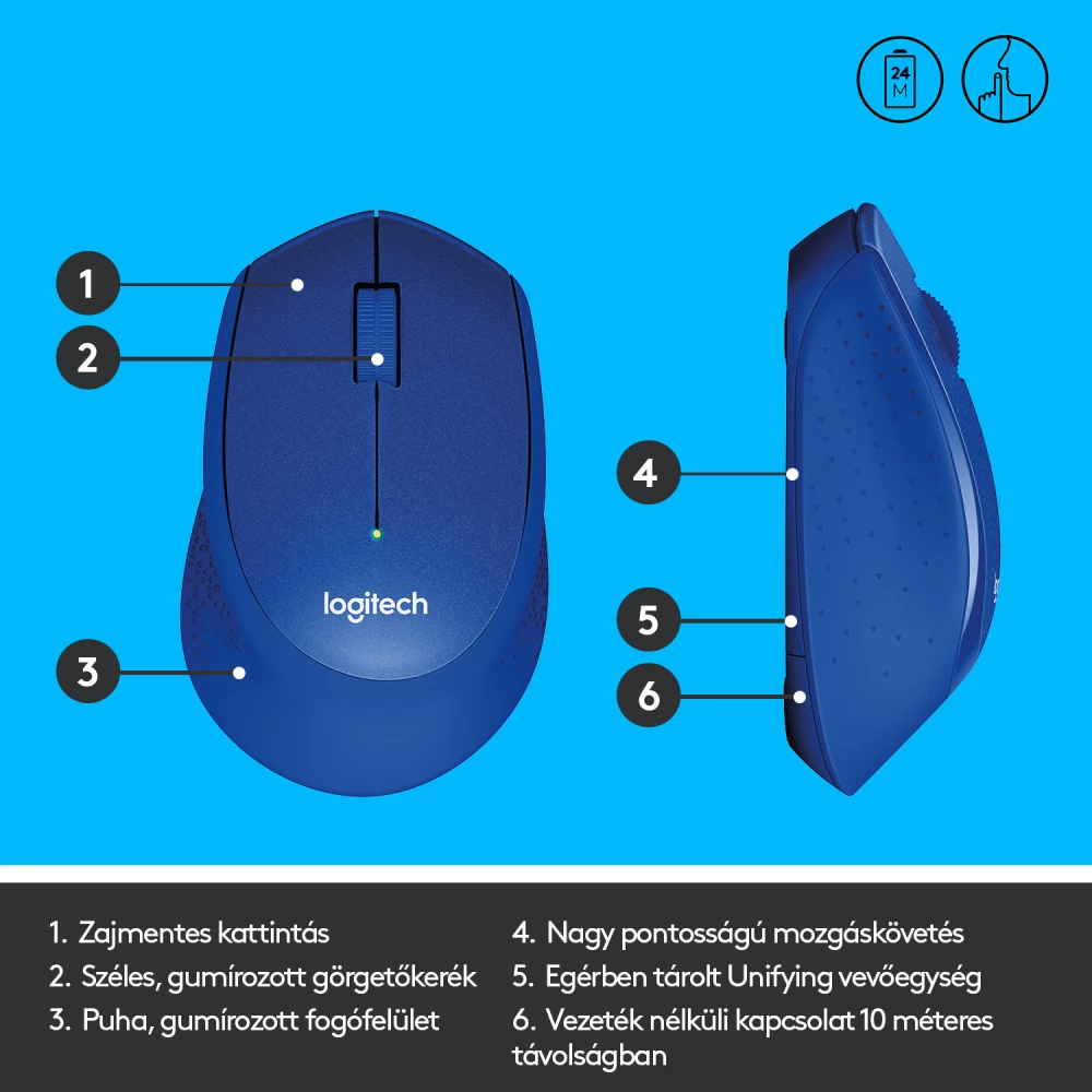 A LOGITECH M330 Silent Plus egy kiváló minőségű és megbízható eszköz, mely rendekívül csendes működésű. Ideális választás munkára és szórakozásra egyaránt. Speciális kényelmet nyújt a jobb kezének, emellett kiváló pontosságot, hosszú üzemidőt és széles körű kompatibilitást biztosít – mindeközben több mint 90%-kal csökkentve a kattintás hangját. Ez teljes összpontosítást jelent az Ön számára és csöndesebb környezetet az Ön környezetében lévő személyeknek.