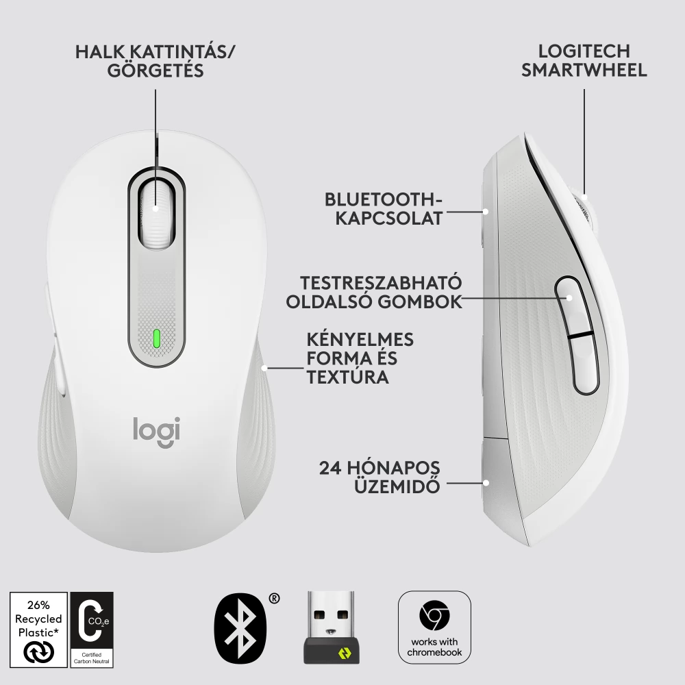 LOGITECH M650 Signiture vezeték nélküi egér Bluetooth Wireless - fehér