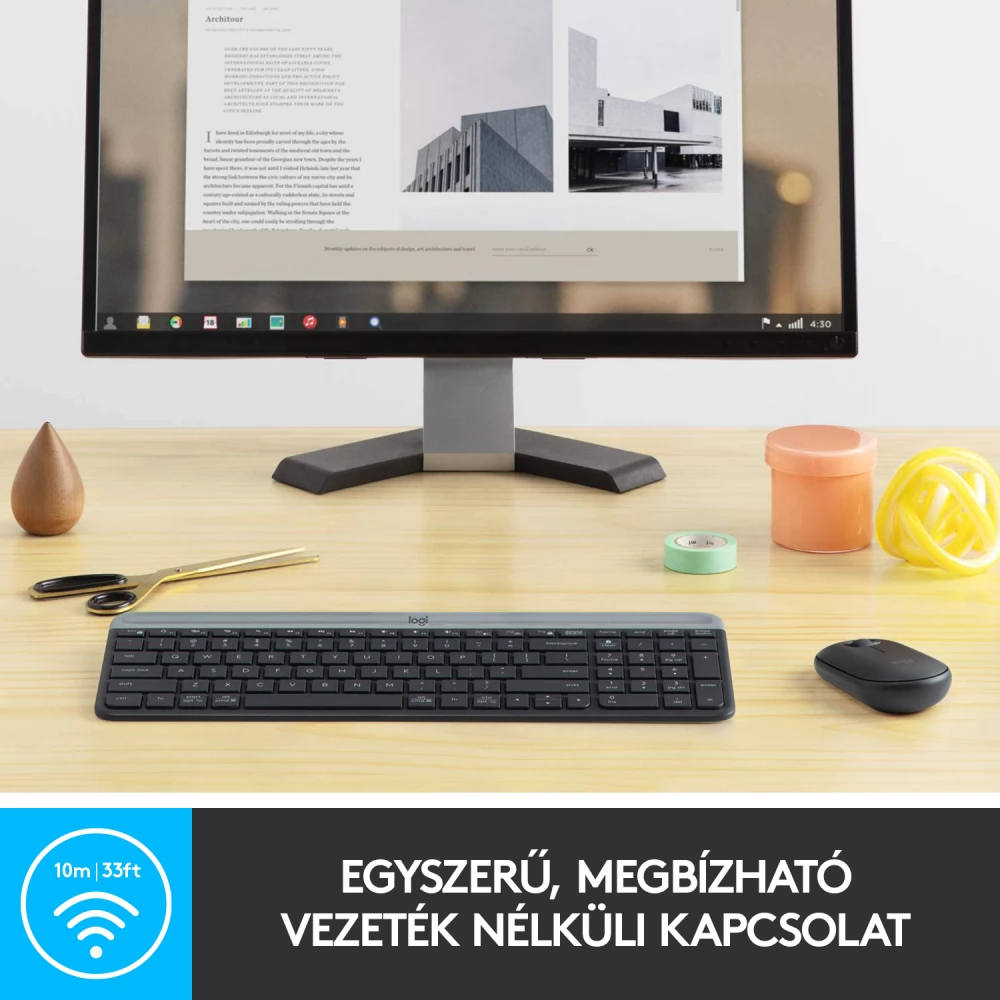 Az MK470 Slim Combo párost az egyszerűség emeli ki társai közül. A vékony profilú és minimalista kialakítású billentyűzet és egér kihangsúlyozza az íróasztal letisztultságát és rendezettségét.