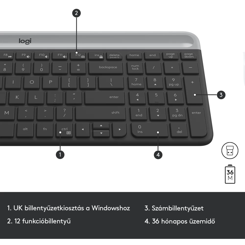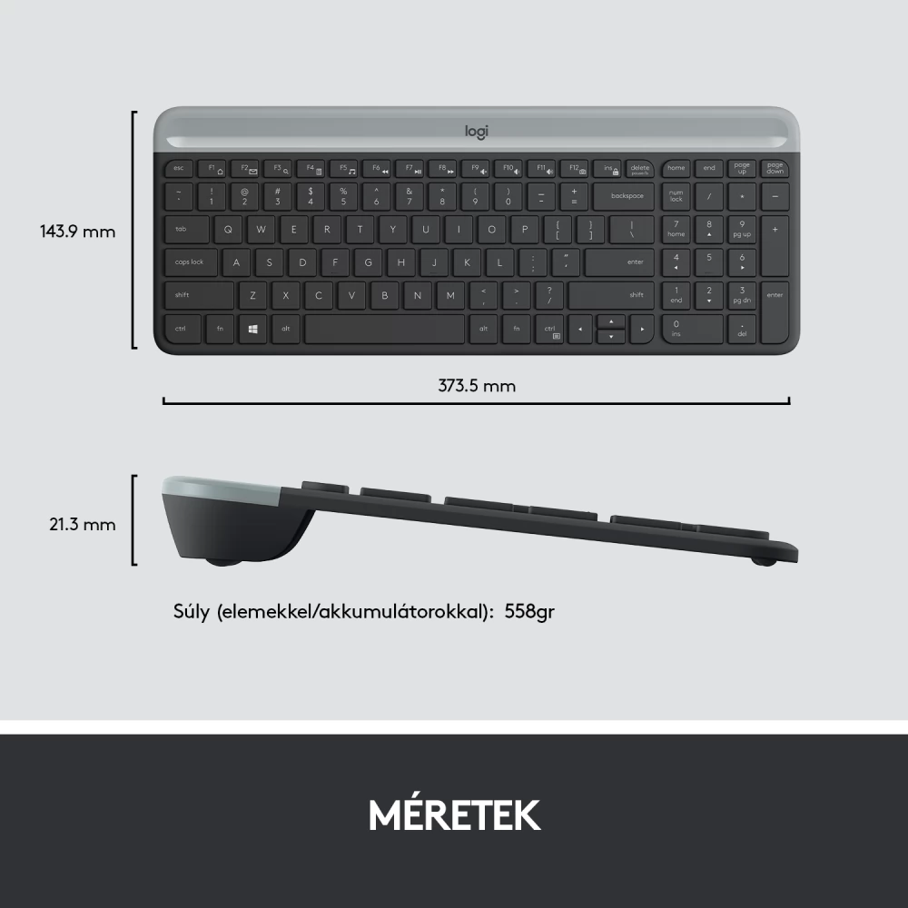 A kisméretű billentyűzet számbillentyűzetet és 12 funkcióbillentyűt is magába foglal, így minden szükséges billentyűt biztosít Önnek. A vékony egér a hordozhatóság etalonja, könnyedén helyet talál neki a laptoptáskában vagy a zsebében.