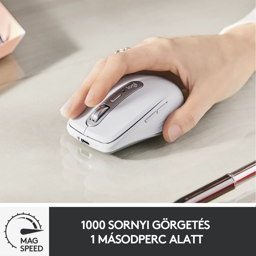 A LOGITECH MX Anywhere 3 for Mac vezeték nélküli egér egy kiváló minőségű eszköz, mely kis méretű, lapos kialakítású, MagSpeed görgetéssel és a mozgást bárhol követő érzékelővel rendelkezik. Arra terveztek, hogy problémamentesen lehessen használni Mac és iPad készülékkel. Kiváló választás az úton lévő alkotók számára, akár otthoni irodában, akár kávéházban vagy akár egy repülőtér utasvárójában dolgoznak.