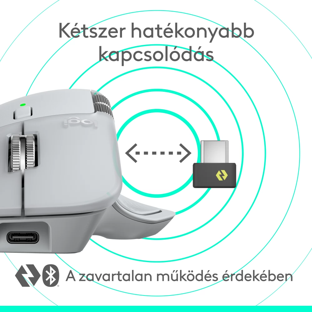 Élvezze a 2× nagyobb teljesítményű kapcsolatot az USB-C-vevőegység, a korszerű rádióchip és az optimalizált antenna révén a gyorsabb, erősebb és megbízhatóbb teljesítmény érdekében – vagy használja a Bluetooth-kapcsolatot a még sokoldalúbb működéshez.