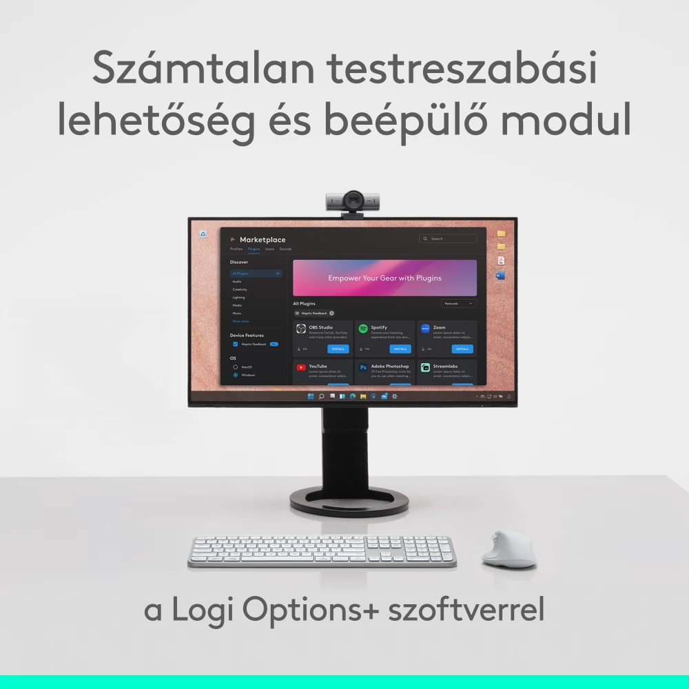 Az Actions Ring segítségével ezen az MX sorozatú egéren könnyedén hozzáférhet kedvenc eszközeihez – a dinamikus, testre szabható kezelőfelület alkalmazkodik az egyes alkalmazásokhoz, a leggyakrabban használt szűrőket, beállításokat és parancsikonokat a kurzorra helyezve.