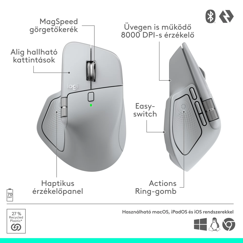 Logitech MX Master 4 ergonomikus vezeték nélküli egér nagy teljesítményű haptikus visszajelzéssel, ultragyors görgetéssel, USB-C-töltéssel, Bluetooth-szal.