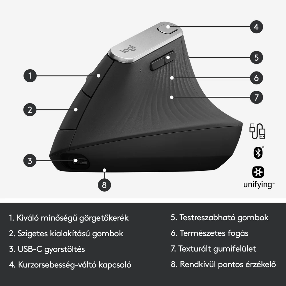 LOGITECH MX Vertical Ergonomikus vezeték nélküli egér Fekete