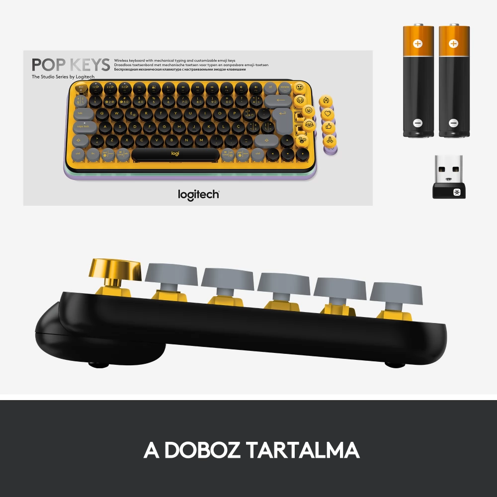 Boldog? Mérges? Szerelmes vagy? A POP Keys nyolc cserélhető emoji billentyűt tartalmaz, amelyeket könnyedén keverhetsz és párosíthatsz hangulatodnak megfelelően. Ezeket a Logitech Software segítségével bármelyik meglévő hangulatjelhez hozzárendelheted, vagy az emoji menü gombjára koppintva válassz a hangulatjelek teljes skálájából, miközben barátaiddal csevegsz.