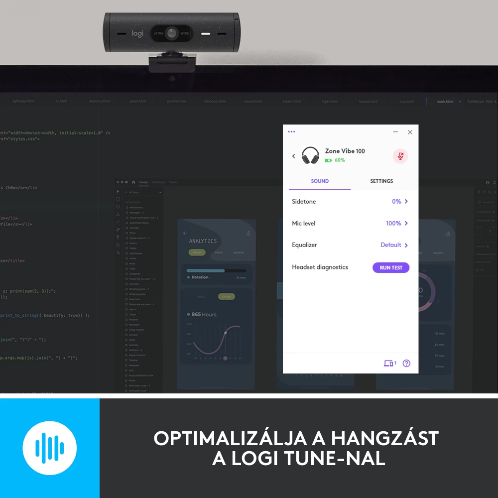 Vegye kezébe a zenei és az értekezlet élményének irányítását a Logi Tune-nal. Állítsa be az önhangot, a mikrofon szintjét és a hangszíneket a legmegfelelőbb audioélmény eléréséhez a Logi Tune asztali vagy mobilalkalmazással a Logitech mikrofonos fejhallgatók számára Továbbá tartsa naprakészen eszközeit, és csatlakozzon a megbeszélésekhez egyetlen kattintással.