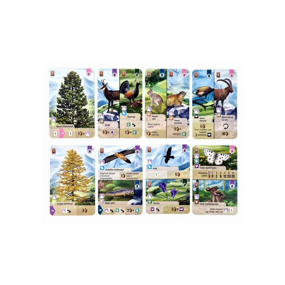 Az erdő: Alpok kiegészítővel új kártyákkal bővíthetitek az alapjátékot. Az új állatok mellett két új fafajta is megjelenik.