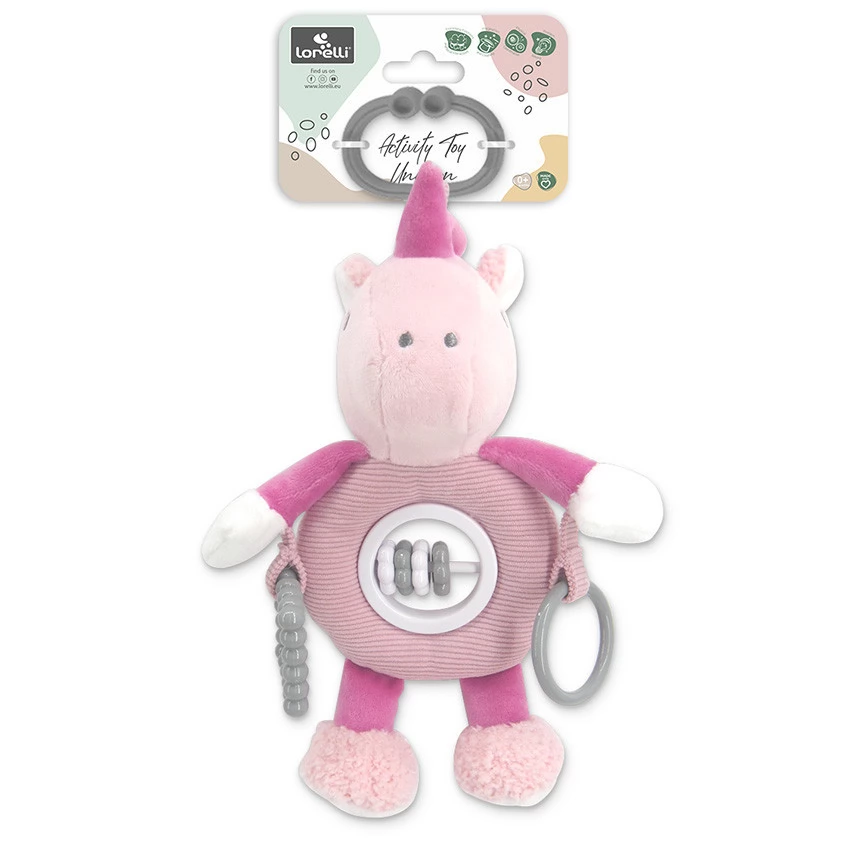LORELLI Rózsaszín egyszarvú plüss csörgőjáték