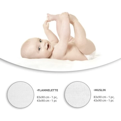 - Anyaga: muszlin és pamut flanel