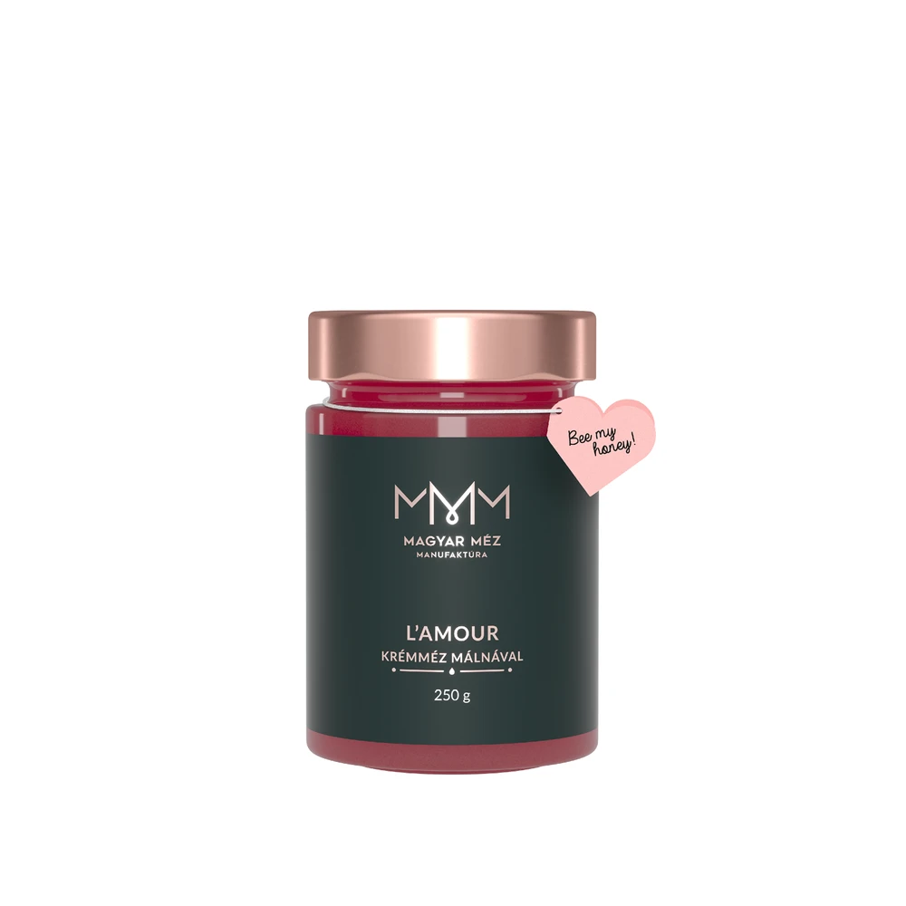 A L’Amour megalkotásával nem más volt a célunk, mint hogy elvarázsoljuk, levegyük a lábáról szívünk választottját, párunkat szerettünket. Végülis ezzel célba is értünk. Megalkottunk egy olyan krémmézet, melyben tökéletes egyveleget alkot a málna savanykás ízvilága a méz édes ízével. Emellett krémes mint a legjobb mogyorókrémek. 5%-os gyümölcstartalommal bír és 95% repcemézzel készült. A liofilizált málnának köszönhetően nincs tápérték vesztés, nincs hozzáadott cukor, színezék, aroma, se tartósítószer!
