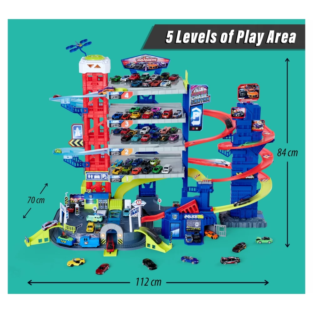 A Majorette Super Chase Center parkolóház fantasztikus ajándék minden kisautó rajongónak.