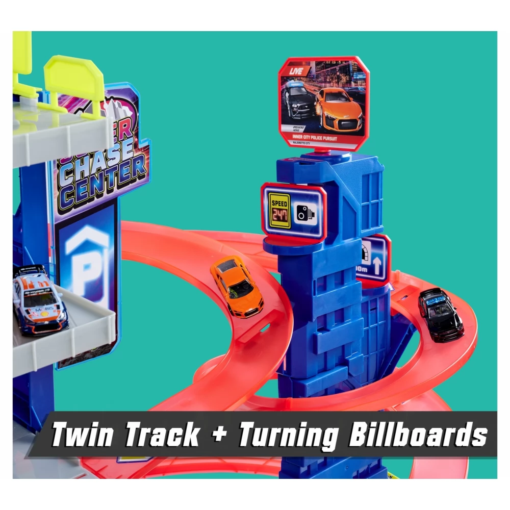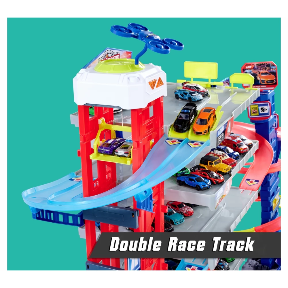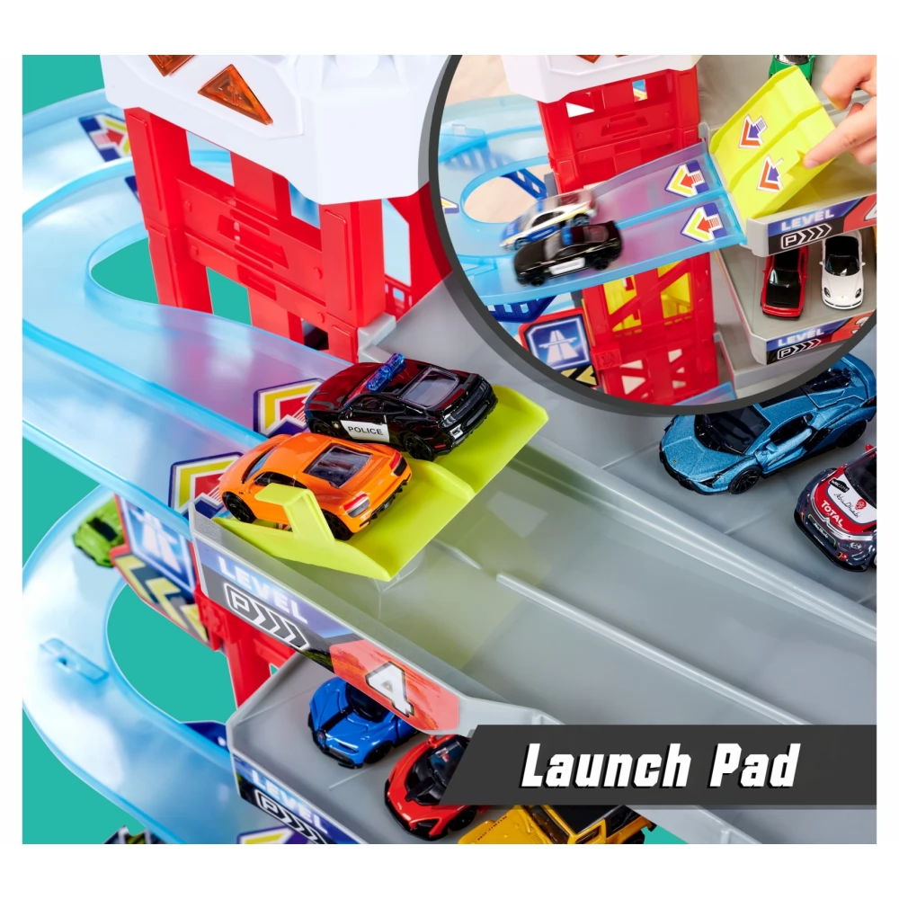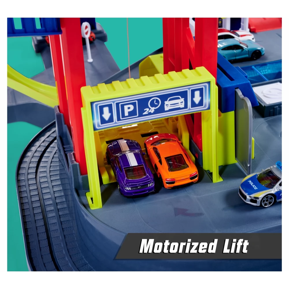 MAJORETTE Super Chase Center óriás parkolóház szett hang és fényhatással