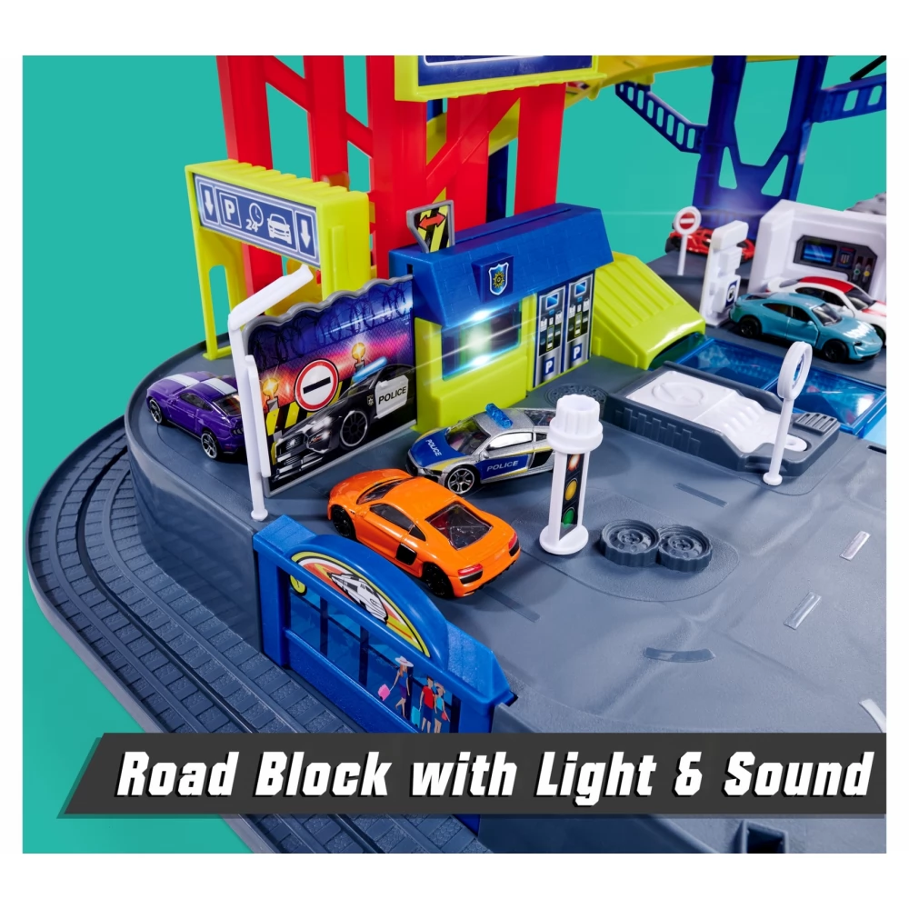 Óriási méretű (84 cm magas) rengeteg funkcióval, hang és fényhatással rendelkező óriás parkolóház. A parkolóház körül még egy vasúti pálya is található amin egy elemes mozdony is közlekedik.