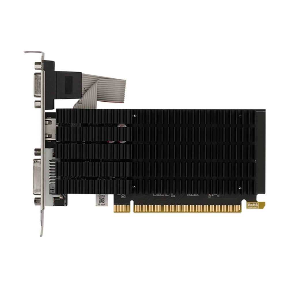 A kártya háromféle csatlakozóval rendelkezik: HDMI, VGA és DVI kimenetekkel, amelyek lehetővé teszik különböző típusú monitorok és kijelzők csatlakoztatását. Az alacsony profilú kialakítás köszönhetően kisebb, szűkös terű számítógépházakba is beépíthető.