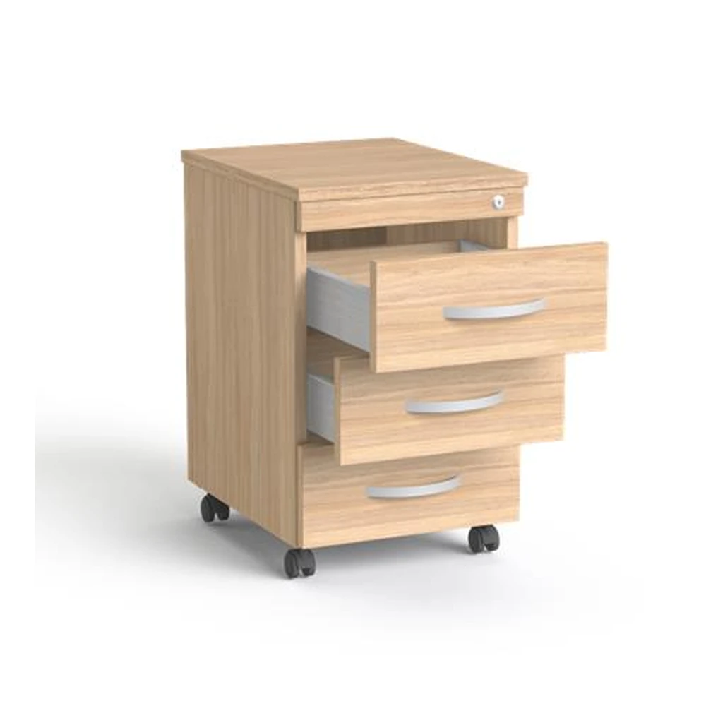 A MAYAH Freedom SV-18 háromfiókos görgős konténer tölgy színű kivitelben praktikus tárolási megoldást kínál irodai környezetben. A konténer könnyen mozgatható görgőkkel rendelkezik, így a mindennapi használat során egyszerűen pozícionálható.