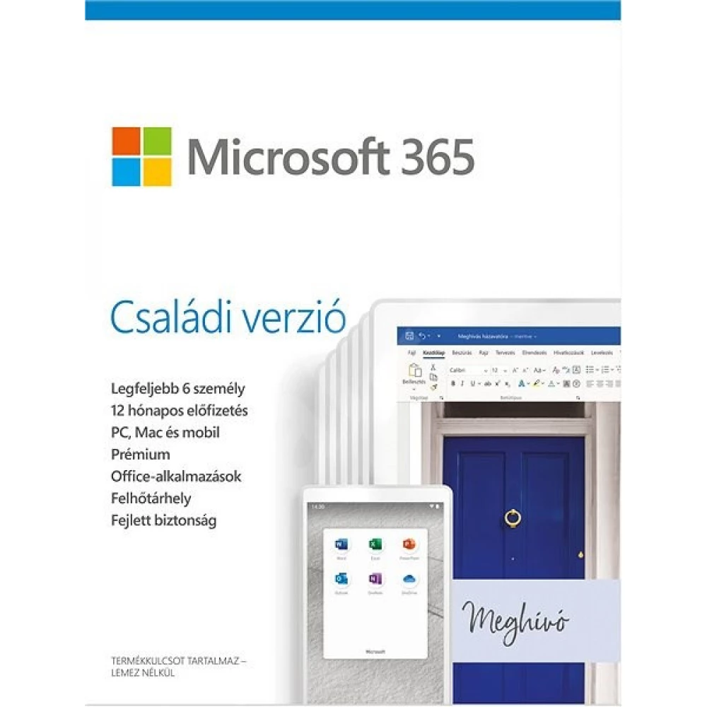 MICROSOFT 365 Családi verzió 1 éves magyar