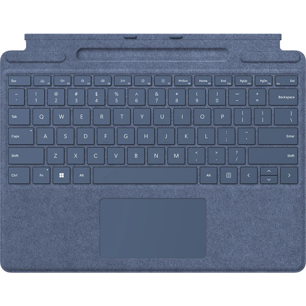 A Microsoft Surface Pro billentyűzet tollal (kék, DE kiosztás) kifejezetten Surface Pro (11. kiadás), Surface Pro 10 for Business, Surface Pro 9 és Surface Pro 8 modellekhez készült. Az elegáns Alcantara® borítású kiegészítő mechanikus billentyűzettel rendelkezik, és tároló helyet biztosít a Surface Slim Pen (2. kiadás) számára, amelyet egyben tölti is.