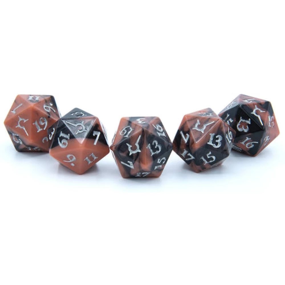 5 darab vér vörös – fekete 20 oldalú kocka a Harkonnen ház nevében.