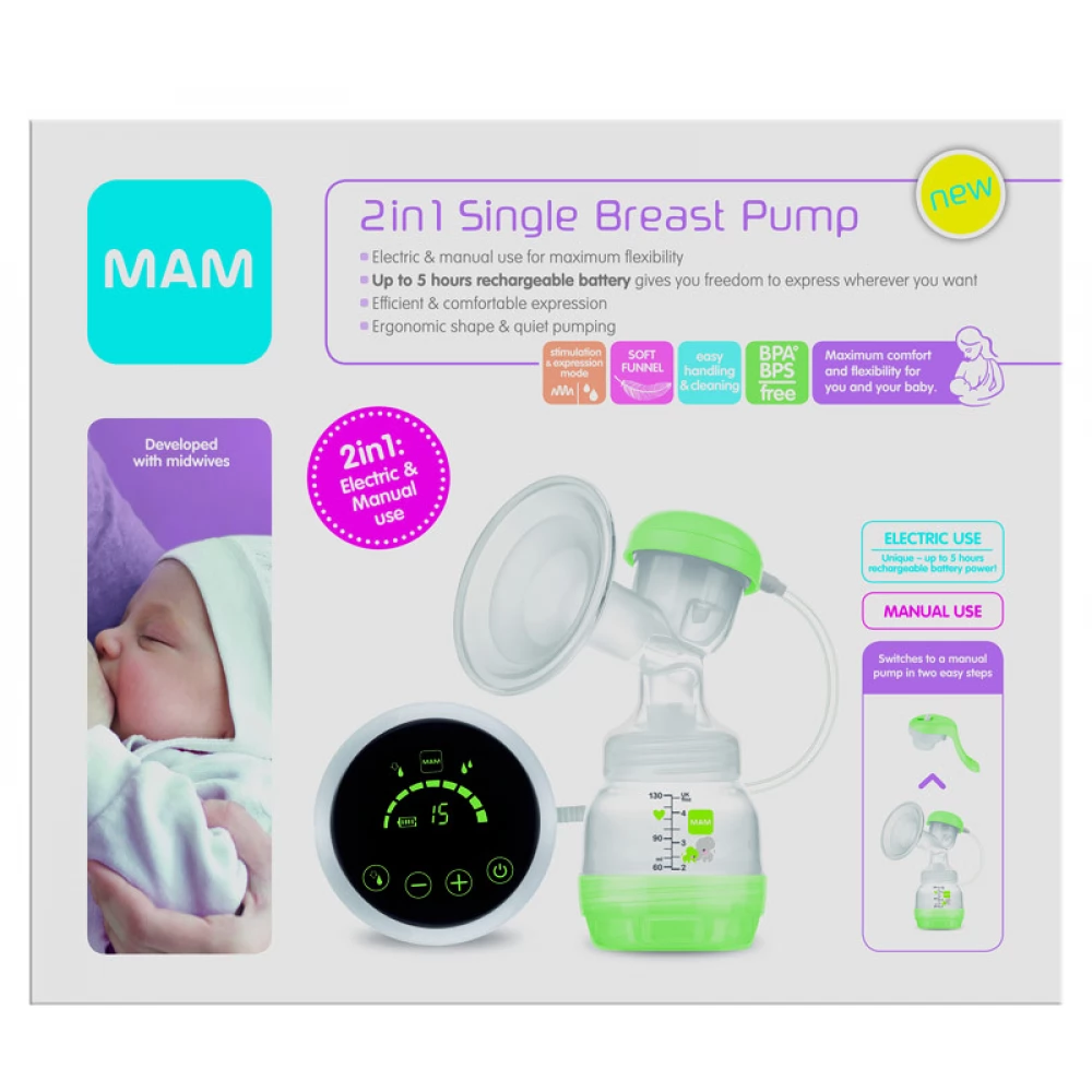 A Mam 2 az 1-ben elektromos mellszívó tökéletes választás, ha gyorsan, könnyedén és diszkréten szeretnéd lefejni az anyatejet. Két egyszerű mozdulattal kézi mellszívóvá alakítható.