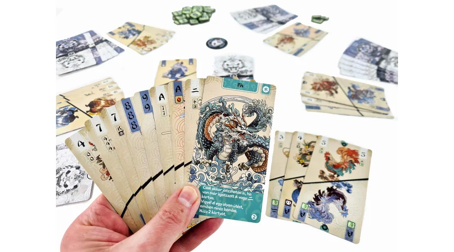 Az ősi kínai bölcsesség csupa szín és csupa mozgás: az égtájak mitikus állatainak körtánca, a minden dolgok változását leíró öt elem tana, a zodiákusok körforgása, ahol a tűzsárkányt a földkígyó követi, és most itt egy mindezekből összegyúrt fordulatos kártyajáték: Az Ütős pandák!