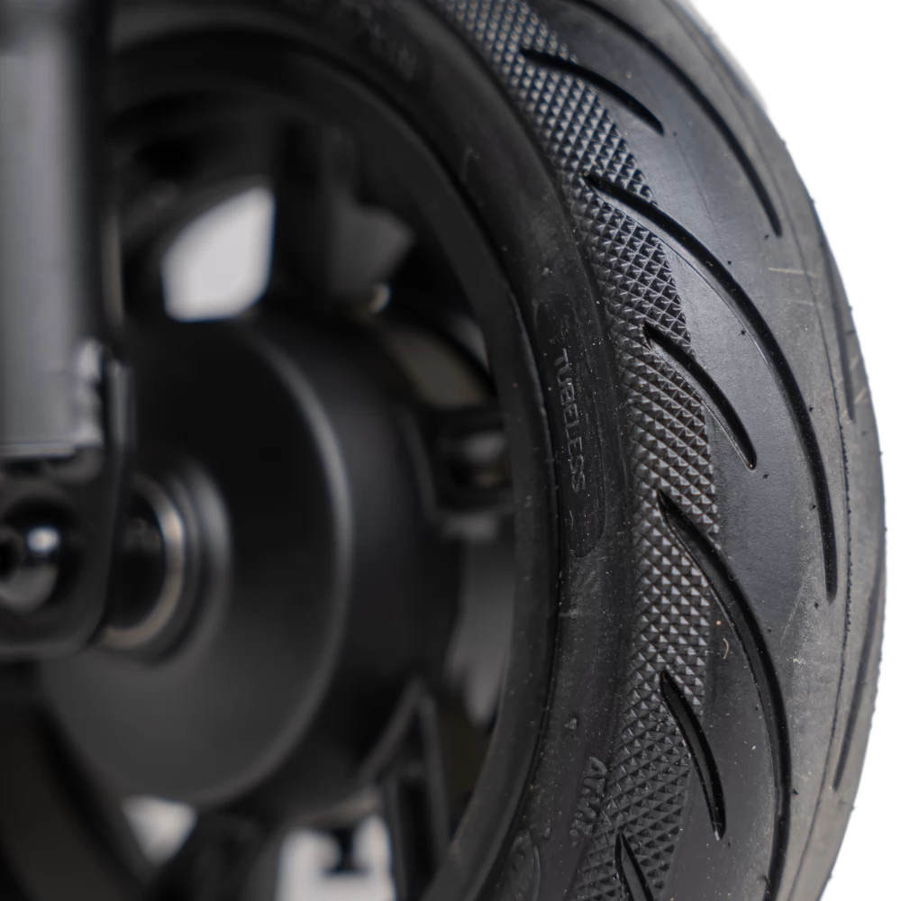 10" tömlő nélküli, önjavító (tubeless, self-healing) gumik a kevesebb defekt és kisebb karbantartási igény érdekében.