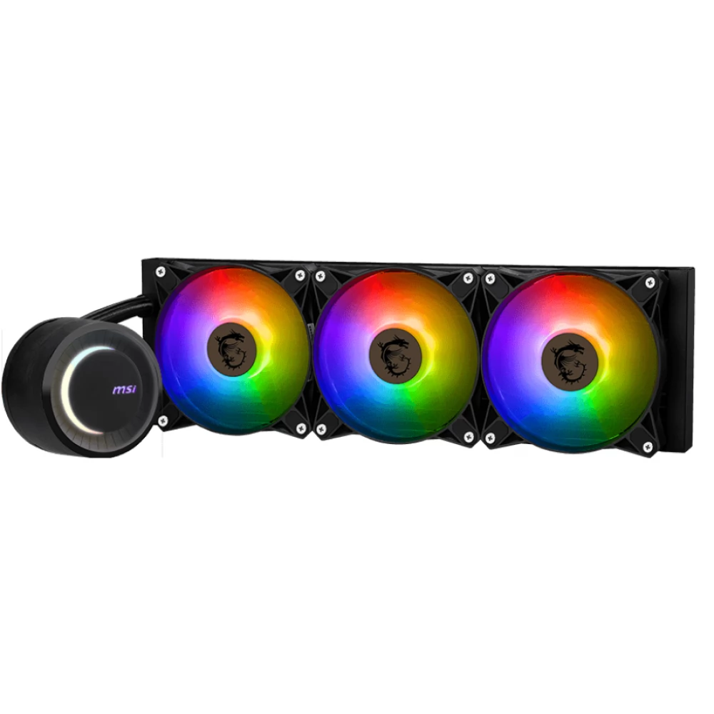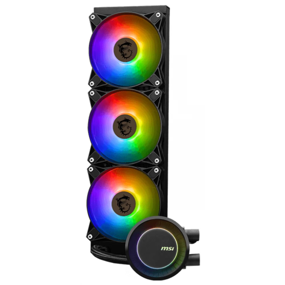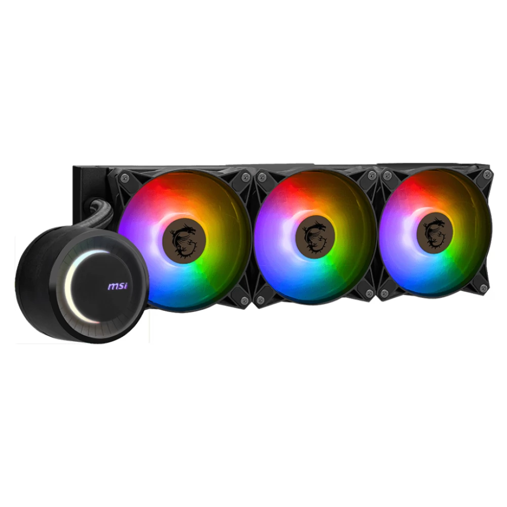 Kompakt, univerzális vízhűtés 3 darab 120mm-es vezérelhető ARGB világítású ventilátorral (PWM vezérlés), 360mm-es radiátorral és szintén vezérelhető ARGB világítású CPU hűtőblokkal. A hűtés különlegessége, hogy a CPU hűtőblokk réz érintkező felülete nagyobb az átlagosnál, ami növeli hűtés hatékonyságát és a külső fedele forgatható (270 fokban), így mindig a megfelelő irányba állíthatjuk.