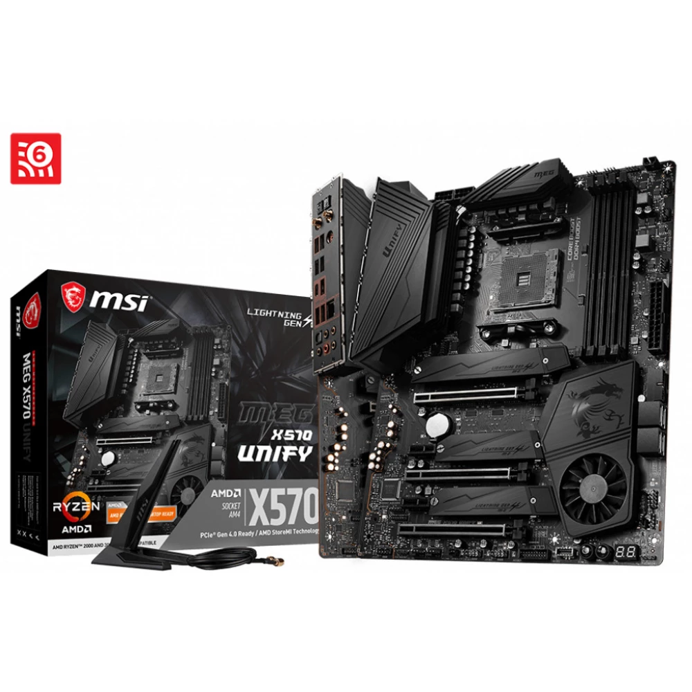 MSI MEG X570 UNIFY típusú alaplap Socket-AM4 foglalattal, AMD X570 chipsettel, Processzorban integrált videokártyával, 4 darab DDR4 memóriafoglalattal (max 128GB). 6 darab USB 2.0 port, 6 darab USB 3.0 port, 5 darab USB 3.1 port.