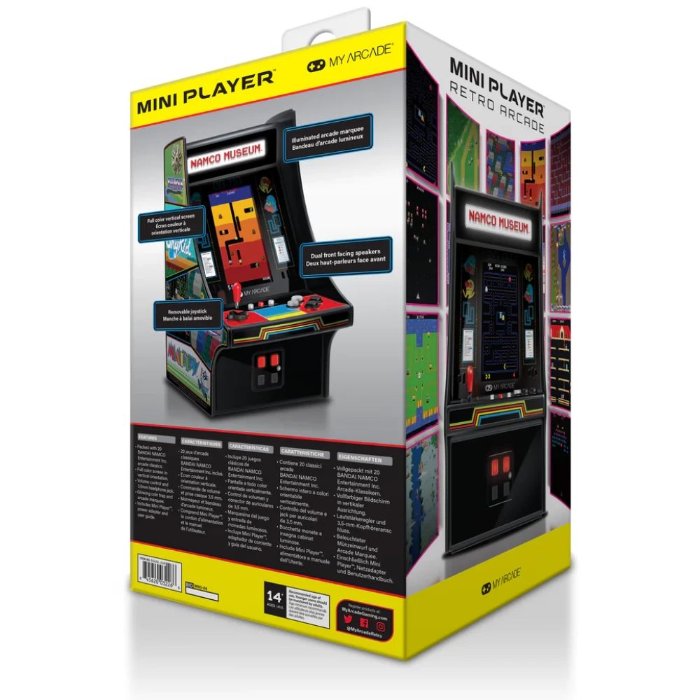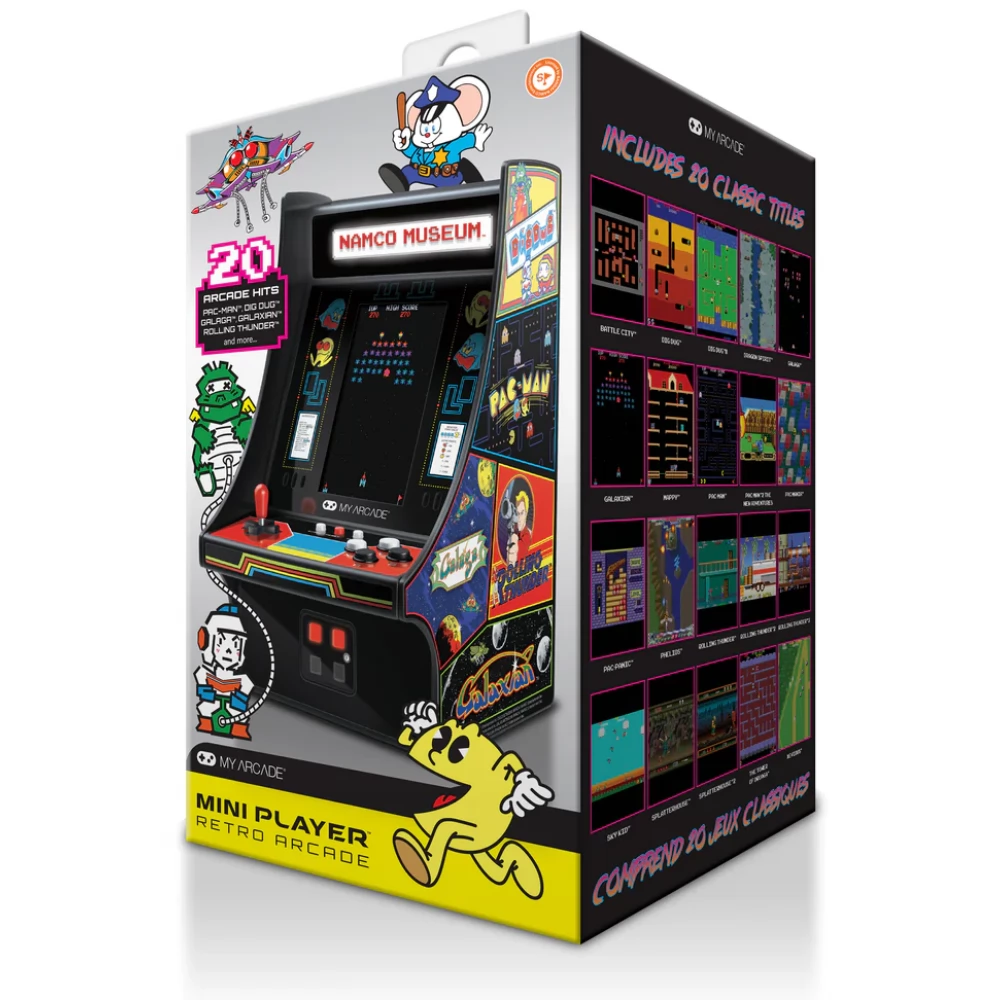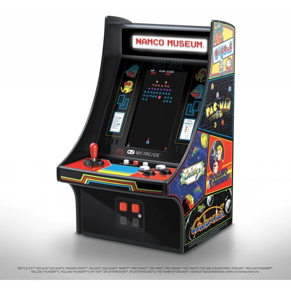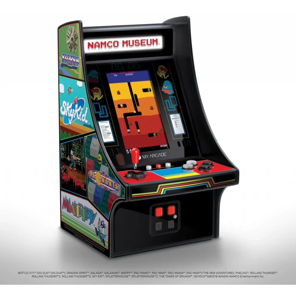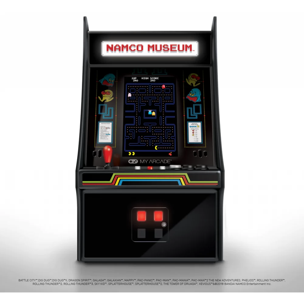 Gyűjthető minilejátszó tele van kedvenc BANDAI-NAMCO játékoddal. Ez a 10 hüvelykes, teljesen játszható játék termi szekrény minden retro rajongó számára kötelező, és olyan klasszikusokat tartalmaz, mint a PAC-MAN, a GALAGA és a DIG DUG.