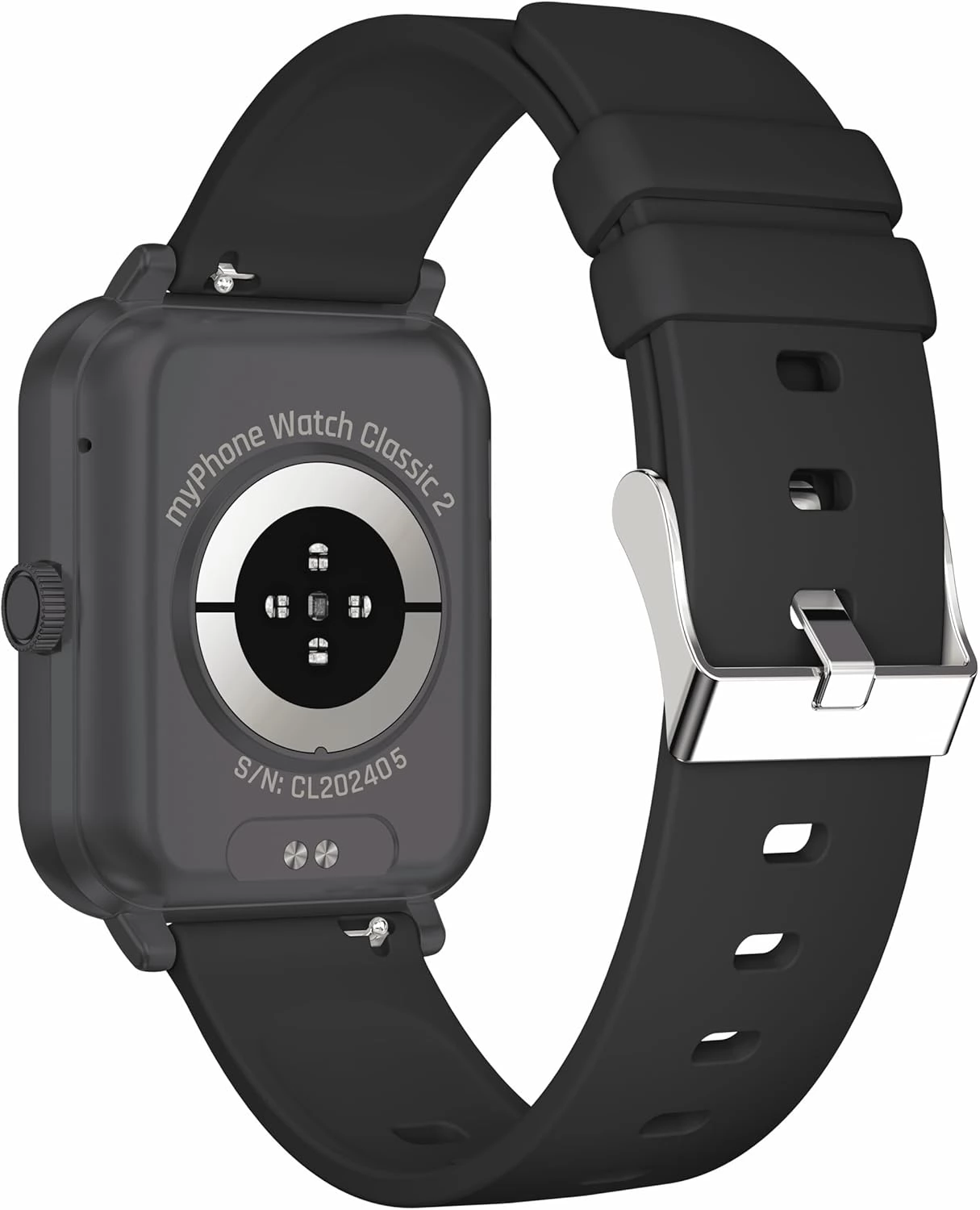 A myPhone Watch Classic 2 egy fejlett okosóra, amely egyesíti az eleganciát és a funkcionalitást. Az 1,8 hüvelykes IPS érintőképernyővel és Bluetooth 5.0 csatlakozással rendelkező eszköz átfogó egészségfigyelést, intelligens értesítéseket, valamint számos sportolási és életmódbeli funkciót kínál. Ideális azoknak az igényes felhasználóknak, akik tökéletes egyensúlyt keresnek a dizájn és a technológia között.