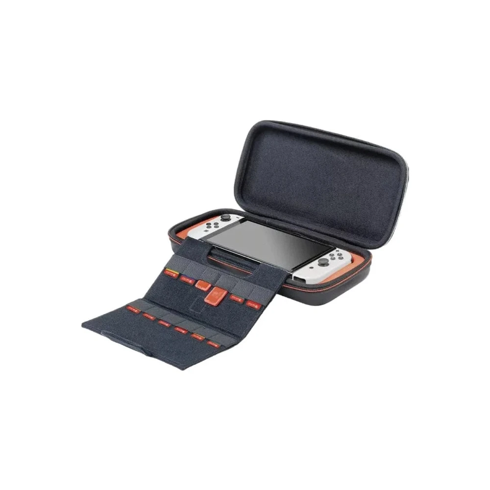 Bár az utazótáska kis méretű, lenyűgöző kapacitással rendelkezik. Belső rekeszei alkalmasak a Switch konzol, a Joy-Con vezérlők, töltőkábelek, illetve több játékkártya tárolására is. Így mindig készen állhatsz a hordozható játékra, legyen szó akár a barátokkal töltött játék-estéről, akár hosszú utazásról.