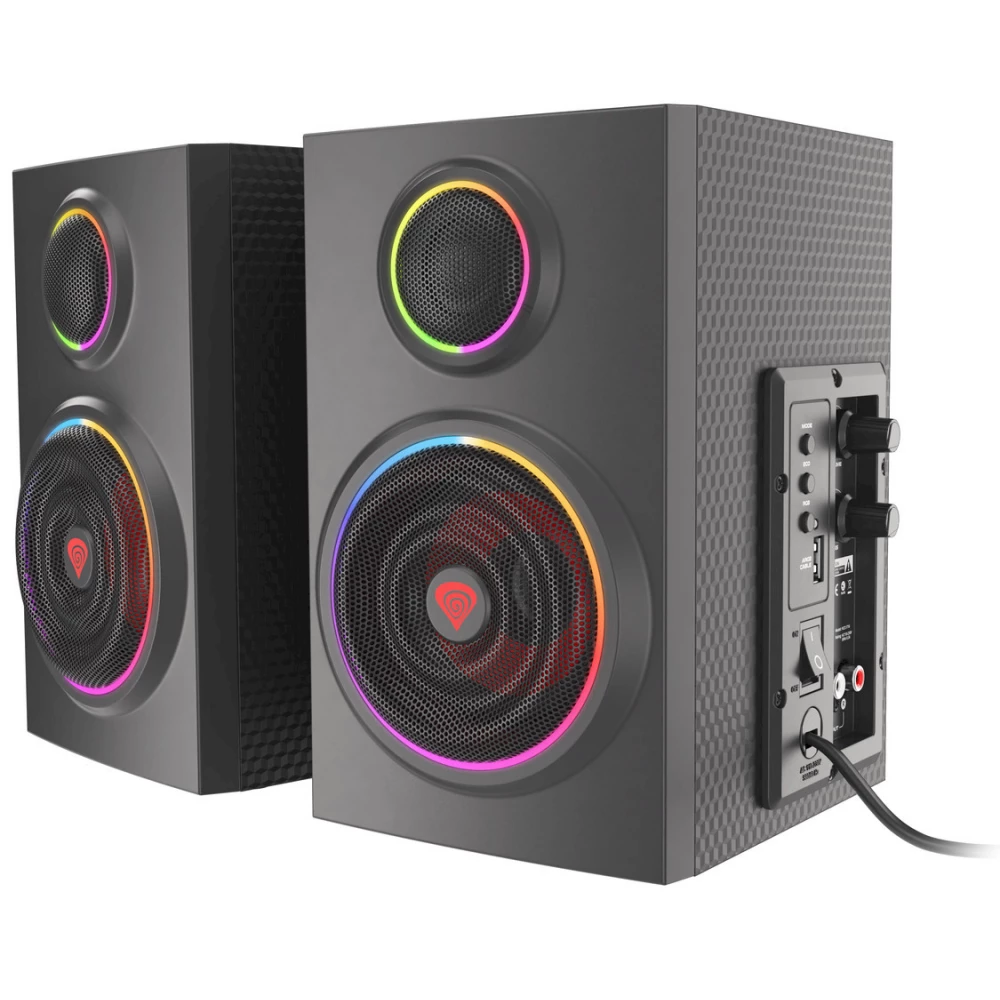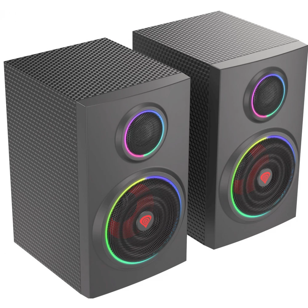 2.0 hangszóró készlet Bluetooth 5.0 technológiával. A Genesis Helium 300BT (NCS-1716) hangszórók minőségi hangzással, 24 W teljesítménnyel és RGB háttérvilágítási módokkal támogatják a játékélményt. Hangerő és basszus hangszabályozók az oldallapon. Bass reflex rendszer az extrém erős basszusokért.