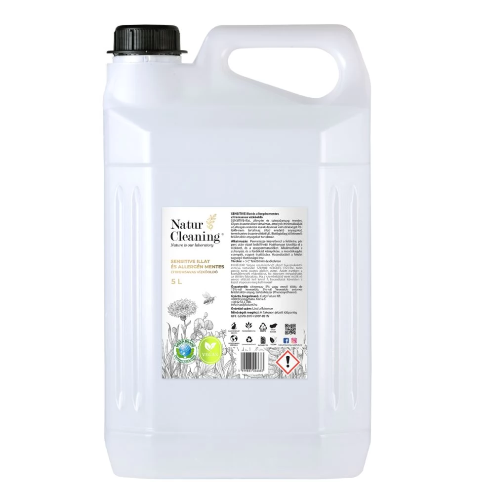 NATURCLEANING Sensitive illat és allergénmentes citromsavas vízkőoldó utántöltő 5 L