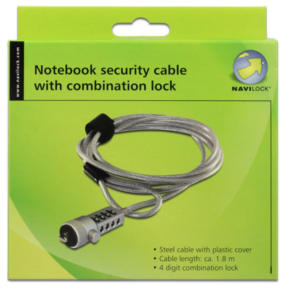 Ezzel a Navilock notebook biztonsági zárral különféle eszközeit (pl. notebook, projektor, monitor, stb.) tudhatja biztonságban. Az 1,8 méter hosszú acélkábelt az eszközhöz ill. azt egy biztos, stabil ponthoz rögzítve és a négy számjegyből álló számzár segítségével "lelakatolhatja" védeni kívánt eszközét.