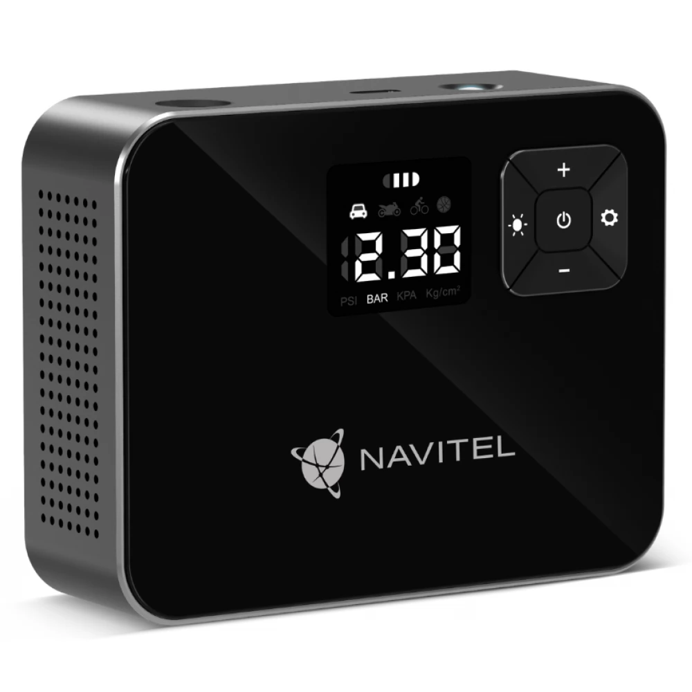 Az előlapon található gombok segítségével a készülék működése egyszerűen konfigurálható a jármű műszaki paramétereinek megfelelően. Az intelligens chip valós idejű adatokat kap az érzékelőtől, és dinamikusan beállítja a nyomást. Egyszerűen állítsa be a szükséges paramétereket és kapcsolja be a kompresszort, a NAVITEL AIR 15 AL pedig automatikusan kikapcsol, amikor a kívánt nyomást elérte.