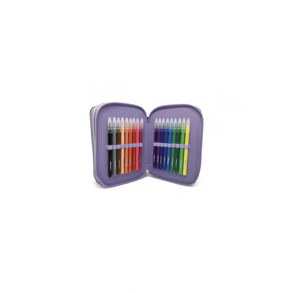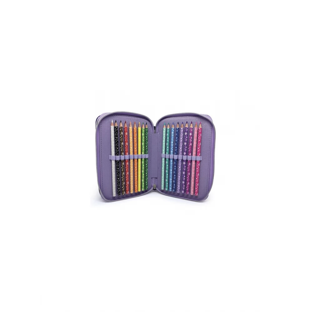 Kiváló minőségű, gyönyörű tolltartó, mindhárom rekesz megtöltve.