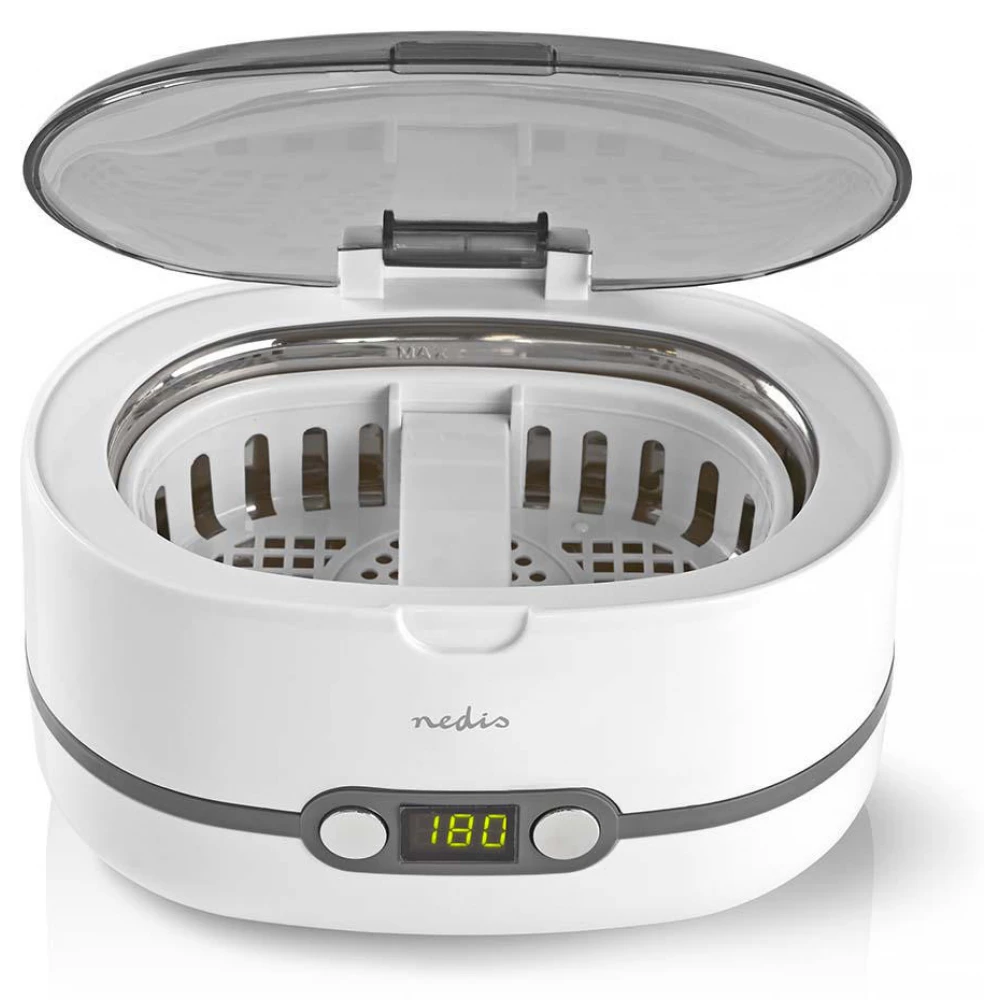Tisztítsa meg ékszereit ezzel az ultrahangos tisztítóval. A 43 kHz-en rezgő hanghullámokkal az ékszer minden portól és szennyeződéstől alaposan megtisztítható. Csak tegye az ékszert a 600 ml-es tartályba, és indítsa el a készüléket. Még a legnehezebben elérhető réseket is tökéletesen megtisztítja. A digitális időzítővel 1,5–8 másodpercre állíthatja a tisztítási időt. Az átlátszó fedélnek köszönhetően látható az ékszer tisztításának folyamata. Őrizze meg értékes díszei, ékszerei vagy akár szemüvege ragyogását és újszerűségét!