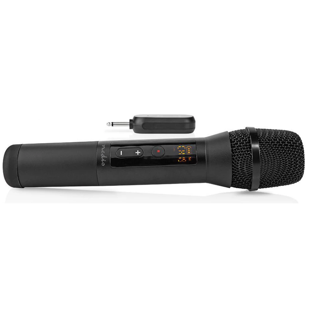 Ez a Nedis® vezeték nélküli mikrofon szinte bármilyen zenei rendszerhez vagy készülékhez csatlakoztatható. A 6,35 mm-es csatlakozóval ellátott, egyedi, kis méretű és hordozható adókészüléknek köszönhetően a mikrofon a zenei rendszerek és hangberendezések széles választékával kompatibilis. Csatlakoztassa PA hangszórókhoz, erősítőkhöz, audiovevőkhöz, keverőkhöz, DJ-felszerelésekhez, karaokegépekhez vagy bármilyen egyéb, 6,35 mm-es bemenettel rendelkező készülékhez.