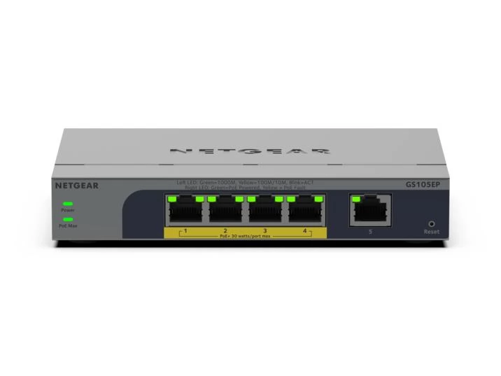 NETGEAR GS105EP 5-Port Gigabit Ethernet Easy Smart PoE+ Switch (63W)