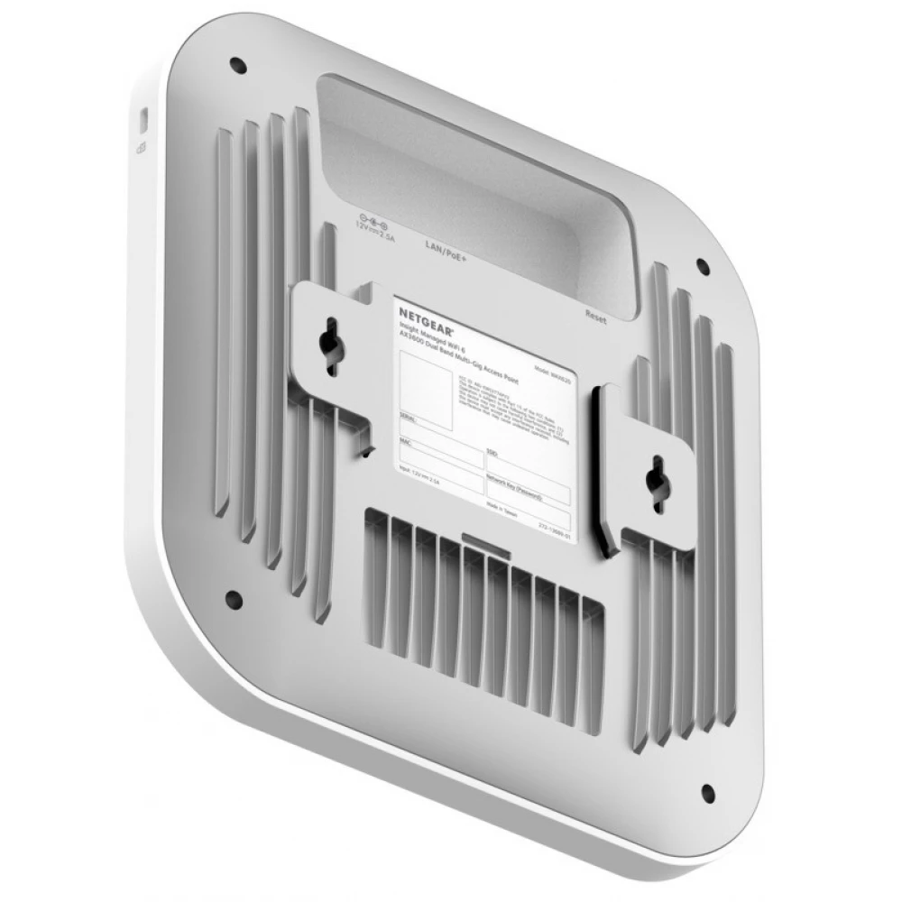 Insight Managed WiFi 6 AX3600 vezeték nélküli hozzáférési pont a NETGEAR-től. Kétsávos Wi-Fi akár 3,6 Gbit/s adatátviteli sebességgel, ideális pl. kis- és középvállalkozások számára. A PoE-támogatással rendelkező 2,5 Gbit/s LAN-port nagy sebességet és egyszerű telepítést tesz lehetővé, legmagasabb szintű WLAN-biztonsági funkciók WPA3 által, SSID-ken keresztül lehetőséget kínál külön vendég- vagy dolgozói Wi-Fi hálózatok létrehozására, 1 éves előfizetéssel a NETGEAR Insight Cloudon keresztüli távoli felügyelethez és kezeléshez.