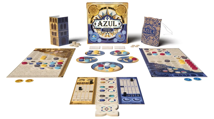 A kifejezetten 2 játékos számára tervezett Azul – Párbaj a rendkívül népszerű, Év játéka díjas Azul társasjáték izgalmas verziója. Módosított játékmenete nagy elődjénél még több taktikai lehetőséget kínál, ugyanis a játékosok több akcióból választhatnak: körükben nem kötelesek csempét elvenni, illetve akár 3 helyről is szerezhetnek építőelemeket!