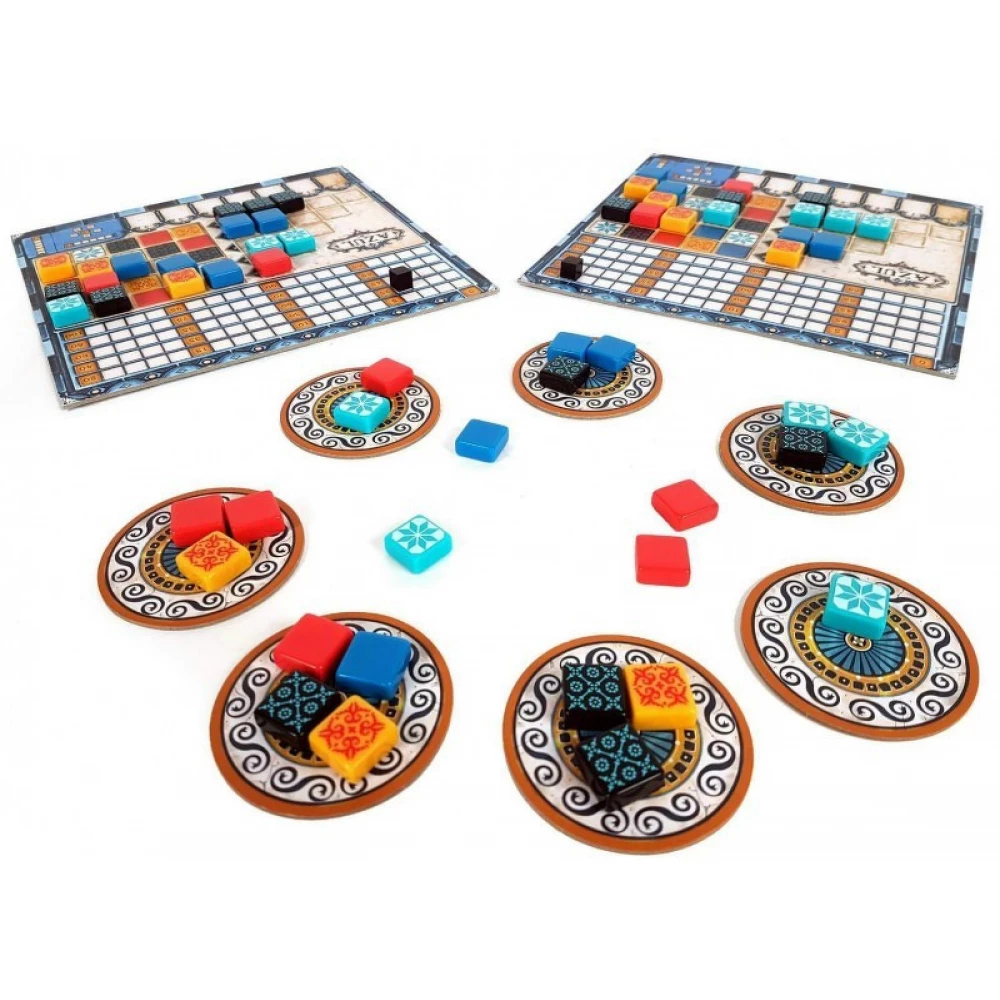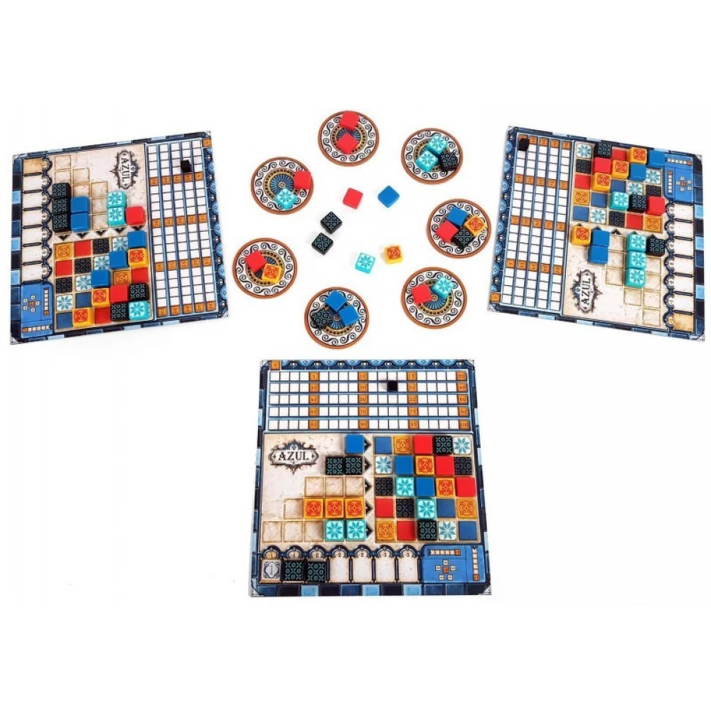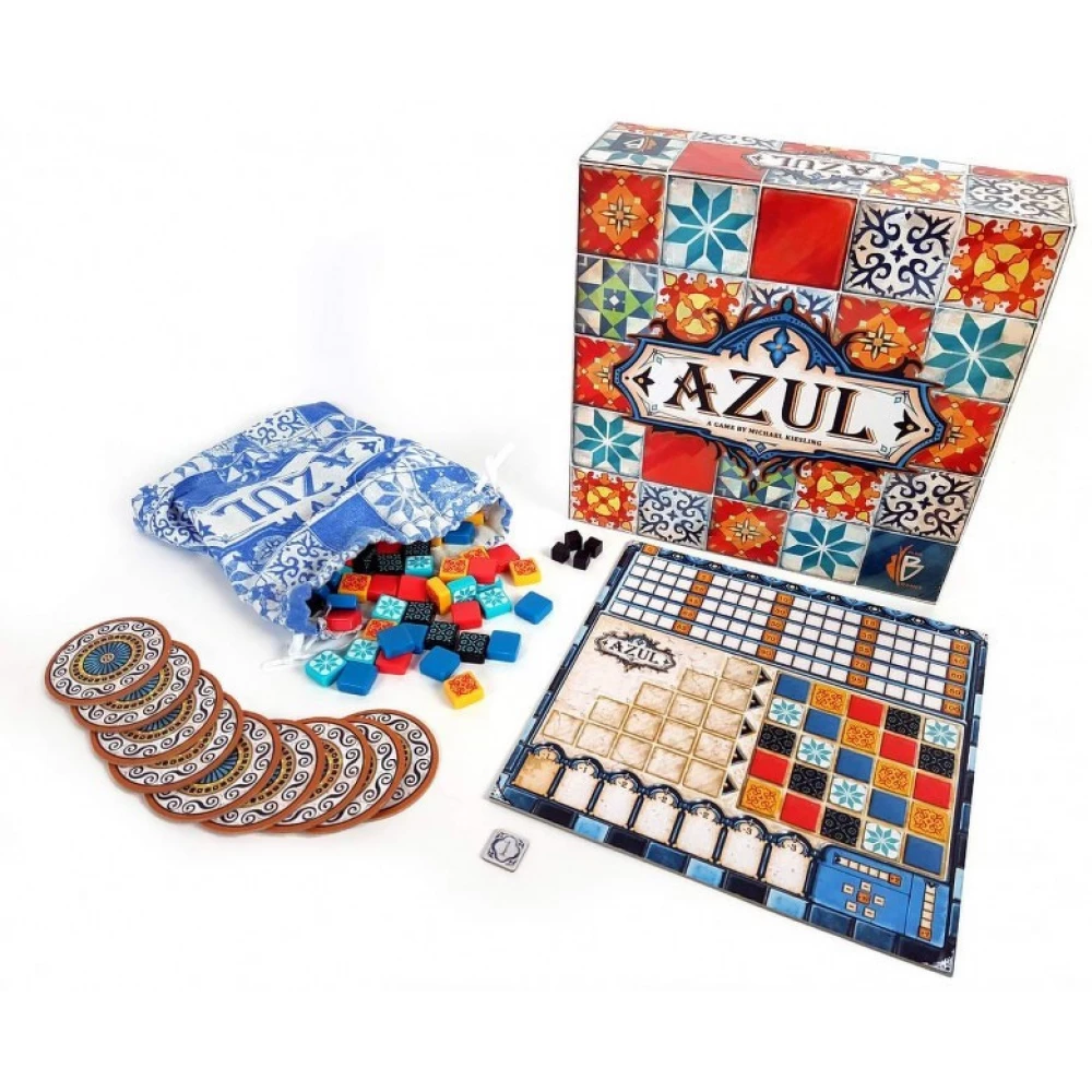 Az Azul társasjátékban a játékosok mindegyike egy-egy építészmestert alakít, aki a legszebb mozaik elkészítésével igyekszik elnyerni a király bizalmát, és persze a nagy vagyonnal kecsegtető megbízást a palota díszítésére. Az Azul-ban nincs más dolga a játékosnak, mint okosan és időben kiválasztani azokat a csempéket a gyárak kínálatából, amelyekből a legértékesebb helyekre tud tartalékolni készletet, majd azokból feltölteni a készülő díszes csempefal sorait és oszlopait. Ehhez nem csak a saját készülő munkáját kell szem előtt tartani, de a többiekét is figyelni kell! Egy rossz választásnak akár az is lehet a vége, hogy egy akkora csempekészlet jut a játékosra, amelyet nem tud beépíteni, így a nyakán maradó darabok miatt komoly veszteségek érhetik.