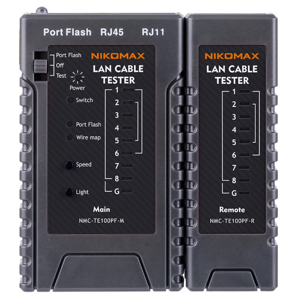A NIKOMAX NMC-TE100PF kábelvizsgálót az RJ45 csatlakozókkal ellátott, csavarérpáras kábelek ellenőrzésére tervezték. Az eszköz képes diagnosztizálni a vonal hibákat, mint a sérült huzalozás, a vezeték törések, a rövidzárlatok. Az eszköz Port-Flash funkciója képes megállapítani, hogy a csatlakoztatott kábel a berendezés melyik portjába van csatlakoztatva, LED jelzőfények segítségével.